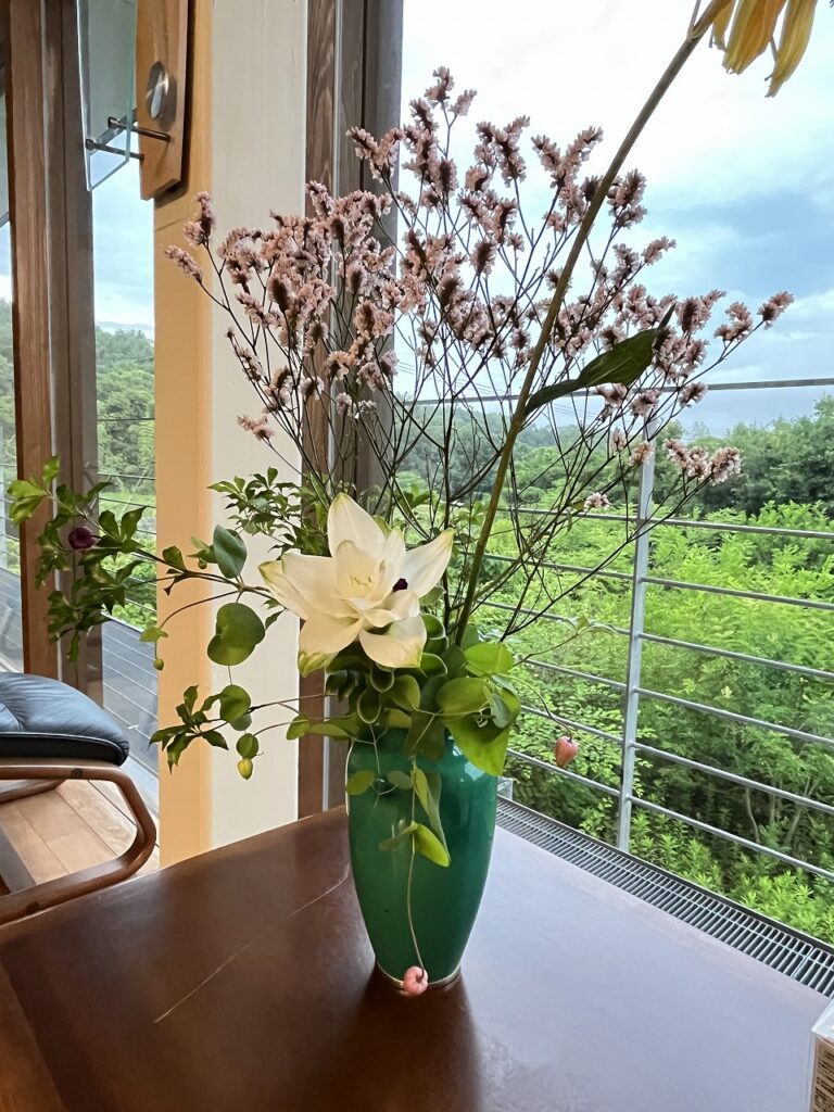 夏の生け花は、緑があると爽やかですね。