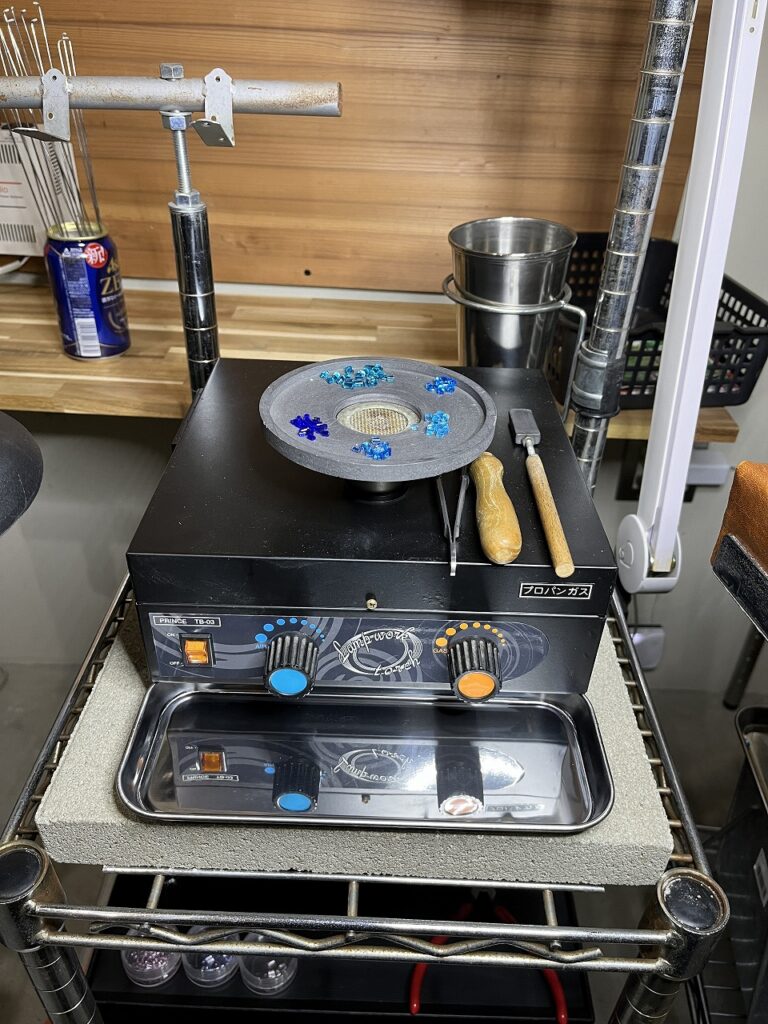 ようやく調整を終えたバーナーです。これからワイヤーにガラスを溶接していきます。皆さんはどんな風にワイヤービーズができるか知っていますか?