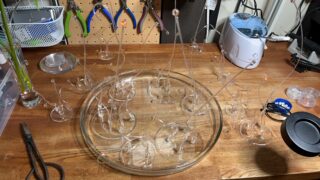展示用にパーツを膨らませていきます。追加用のアクリル板も手に入りましたので、さっそく枝物を作っていきます。ウネウネだらけになりそうです(笑)水盤の中に入りきらないので、外回りを囲むような配置です。手持ちにガーベラがなかったので、今日の教室の...